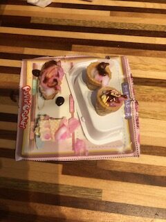 ③全部で3種類できました。ソフトクリーム、タルト、ミルフィーユ?でした。子供だけでは難しく少しお手伝いをしました。見た目は箱の写真のようにうまくはできませんでしたが、味はまあまあでした。小さいのでひと口でなくなりました・・・汗