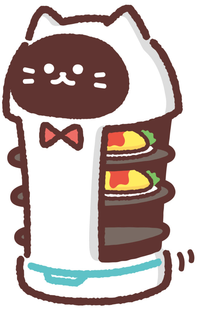 ②注文はタッチパネルで行います。注文すると結構すぐに運ばれてきました。初回の注文時は店員さんが運んでくれましたが、次からはネコ型ロボットが運んできてくれました。子供達はそれが面白いようで、音楽が聞こえると「猫ちゃんきたー」と嬉しそうにずっとみていました。